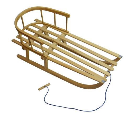 Tradycyjne Sanki drewniane dla dzieci z oparciem i sznurkiem w zestawie