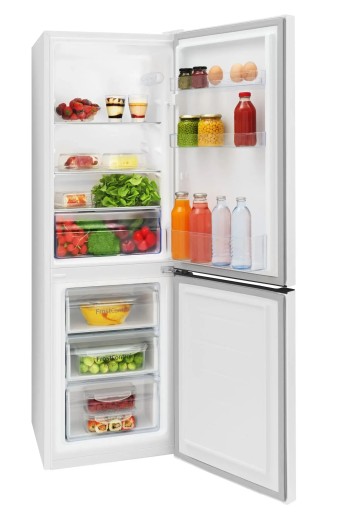 - Wyposażenie: 3 półki szklane, 3 półki w drzwiach, pojemnik na jajka, 1 szuflada na warzywa i owoce