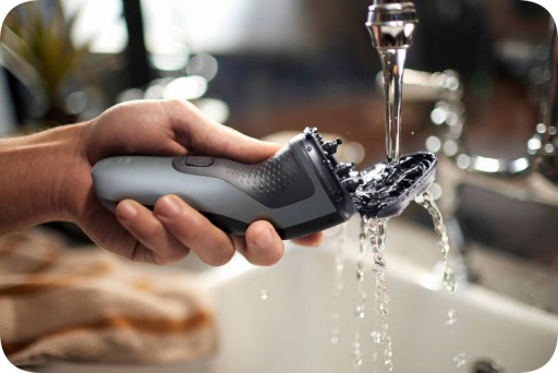 Golarkę o wodoodpornej konstrukcji IPX7 można łatwo myć pod bieżącą wodą. Klasa IPX7 oznacza, że urządzenie można zanurzyć w wodzie na głębokość 1 metra przez maksymalnie 30 minut