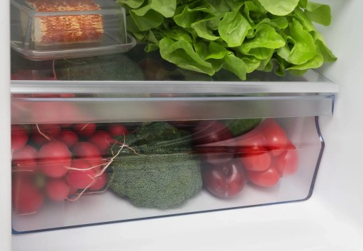 - Wyposażenie: 3 półki szklane, 3 półki w drzwiach, pojemnik na jajka, 1 szuflada na warzywa i owoce