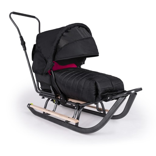 Polskie wielofunkcyjne sanki, wyposażone w budkę, śpiwór, pchacz, podnóżki i kółka model Termo_Pik Line na sezon 2025/2026 znakomicie sprawdzą się w śnieżne dni i zapewnią doskonały wypoczynek i zabawę Twojemu dziecku.