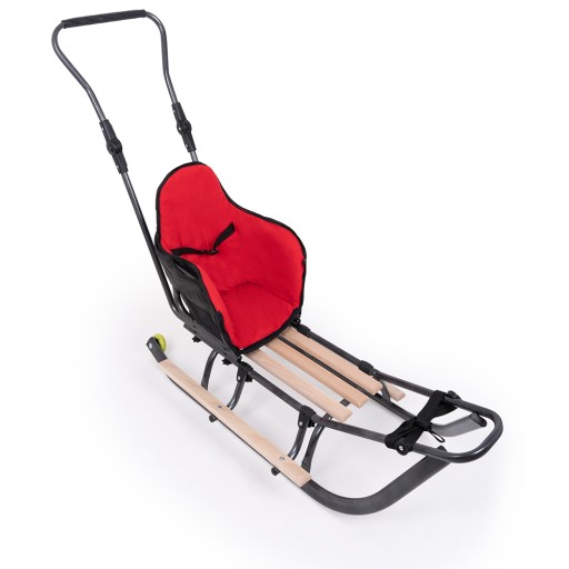 Sanki posiadają pchacz i oparcie,które można bardzo łatwo zdemontować.